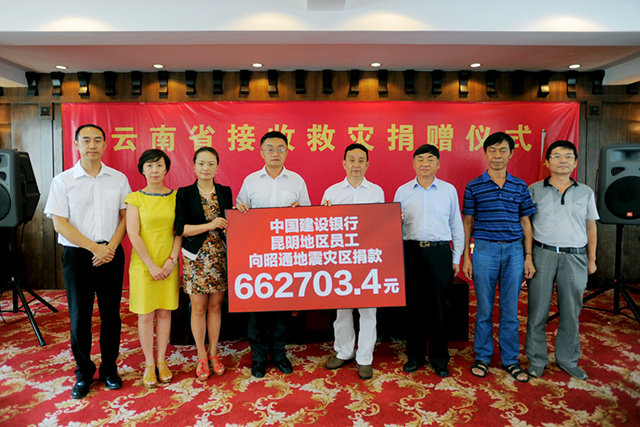 8月8日上午,建行云南省分行昆明地区员工共向云南地震灾区捐款66.27万元,支持灾区恢复重建。