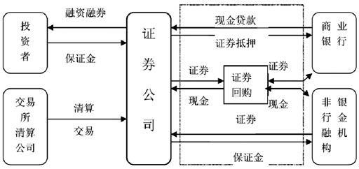 证券商主导,可向银行融通资金、向同业借券。券商净资本占总负债比率高于1/15方可开展业务