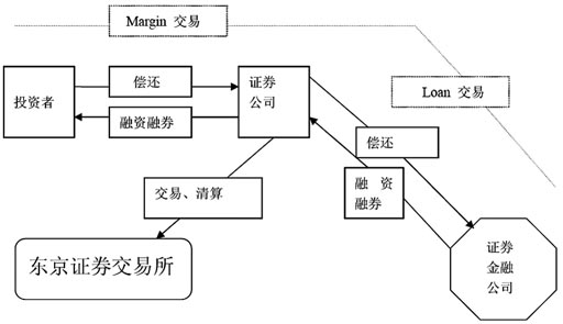 1951年引入了信用交易制度。日本的集中授信模式具有半官方性质,主要由具有垄断性质的专门证券金融公司来调控证券融资融券信用交易。日本现在主要有日本证券金融公司、大阪证券金融公司和中部证券金融公司三家公司,他们提供股票抵押贷款、股票融资和债券融资等方面的融资融券服务。而券商在信用交易中的主要功能是作为中介代理客户融资融券,并且可以从证券金融公司得到融券资金或借款。当证券公司自有资金或自有证券不足,即向专门的证券金融公司进行融通,并支付手续费和利息费。