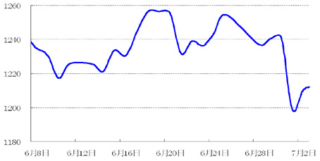 上周国内黄金价格跟随国际金价震荡回落。美国6月非农就业人口降幅大于预期,国际金价获得支撑,国际油价走低