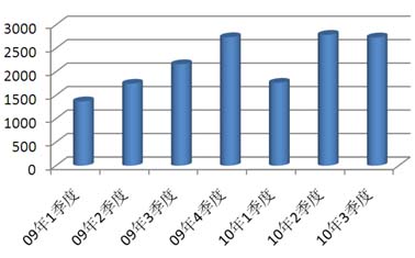 2009年三季度以来各季度理财产品发行数量变化趋势