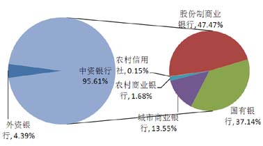 本季度共有72家商业银行参与个人理财产品发行,参与银行数较上一季度减少了11家。63家中资银行发行了2612款理财产品,环比增加175款,市场占比则由上一季度的不足90%增加至95.61%。其中,14家股份制商业银行发行1240款,环比增加141款;6家国有银行发行970款,环比增加50款;参与理财产品发行的城市商业银行虽然较多,达到了31家,但是总发行量也不足国有银行的一半,共发行354款,环比减少15款;11家农村商业银行和1家农村信用社共发行48款理财产品,与上一季度基本持平。9家外资银行共发行120款理财产品,环比减少了127款,市场占比为4.39%。