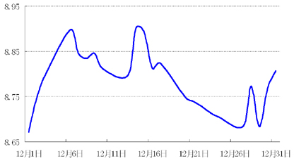 货币市场:上周受央行加息和银行年末备付金需求,资金总量较为紧张,前四天货币市场回购利率连创新高,周五回落,其中7天和1月降幅最为显著