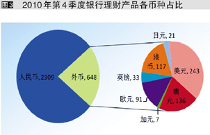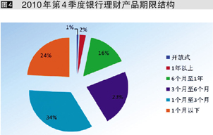 受此影响,12月份同业拆借利率超过5%,创下近3年来新高,理财产品也出现收益走高趋势。以人民币债券与货币市场类理财产品为例:201012月底,7天期的收益率为2.48%,较上季末的2.11%提高0.37个百分点;1个月期的收益率为2.48%,较上季末的2.27%提高0.21个百分点;3个月期的收益率为2.89%,较上季末的2.56%提高0.33个百分点;6个月期的收益率为3.33%,较上季末的2.91%的提高0.42个百分点;9个月期的收益率为3.55%,较上季末的3.28%提高0.27个百分点;1年期的收益率为3.66%,较上季末的3.07%提高0.59个百分点。