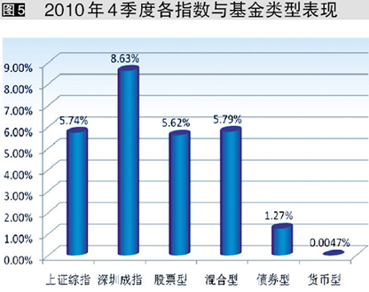 总体来看,各类基金的平均表现甚至差于大盘。混合型基金上涨5.79%,位于各种类型之首,表现最好的是中邮核心优势,增长率为17.01%。(图5)