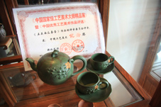 获奖证书是紫砂经营者的广告牌。
