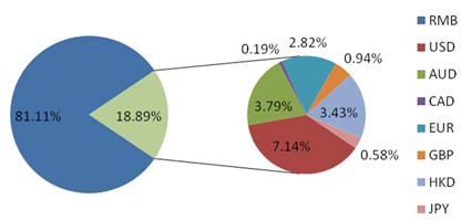 在外币产品中,美元产品继续保持增加,共发行258款,环比增加25款;澳元产品共发行了137款,与上一季度基本持平;港币产品124款,环比增加7款;欧元产品102款,环比增加11款;英镑产品34款,环比增加1款;日元产品和加元产品均与上一季度的发行量相同,分别发行了21款和7款。(图4)