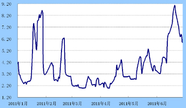 货币市场:公开市场操作净投放资金1200亿元,前期市场资金面趋紧的局面已经有所缓解,市场利率大幅回落, 7天回购利率大幅下行251bp至5.90%