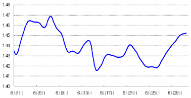 因希腊财政紧缩计划通过,欧元区加息预期再起,美国债务问题受评级机构警告,欧元兑美元上周涨332基点至1.4522。人民币兑美元涨至6.4645