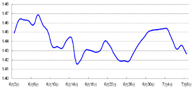 欧洲债务危机继续恶化,穆迪将葡萄牙信用评级调降至垃圾级别,受此影响欧元兑美元回落至1.425附近