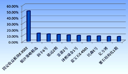 总体来看,本季度基金的投资风格更加谨慎。根据基金公司2011年一季报公布的数据显示,股票占基金净值的比率为71.95%,仓位已经维持在较低水平。除此之外,以“打新”为主要收益来源的债券基金对“打新”的态度也更加谨慎,这主要是受到一级市场的影响:2011年4月、5月IPO首日涨幅平均仅为1.60%和6.40%,是A股历史上新股表现最差的月份,而且新股破发严重,其中5月份上市的26只新股中,就有12只破发。(图6)