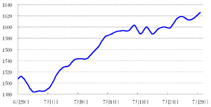 欧债危机仍在蔓延,美国债务上限谈判僵持,欧美数据均不尽人意,使得欧元兑美元震荡为主,欧元涨42bps至1.4395。人民币兑美元涨至6.436