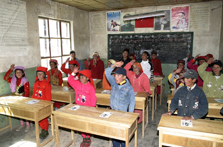 1996年,建行新疆区分行在帕米尔高原上建起了全国第一所建行希望小学——达布达尔乡希望小学。学校位于新疆维喀什地区塔什库尔干塔吉克自治县南部,海拔高度近4000米,现有学生213名(其中1-3年级学生151名,学前班孩子62名),教职工13名。图片提供/王峰 余江灏