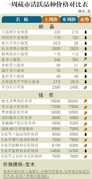 9月上旬,邮市中“老邮”唱起主角,新邮则变得寂寞,与此同时,金银币市场热度减退。邮市:“老邮”板块买气激增,创新高品种此起彼伏。“奔马”、“齐白石”、“四五计划”、“荷花”和“桂林山水”套票分别创出410元、850元、1500元、480元和380元新高,而编号邮票中的“严惩入侵之敌”套票扬升到55元,一周涨幅翻番,近期新邮中的“行书”和“资本市场”小版张则滑落到115元和80元。币市:随“中秋”礼品买盘消退,金银币成交下降,价格徘徊。新品振荡频乃,其中“登封─天地之中”银币下挫至1400元附近,“清华大学”金银套币冲高回落,近日在11000元附近拉锯。