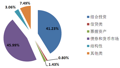 本季度组合投资以及债券与货币市场两类投资性质的理财产品继续保持稳定增长,信贷与票据两类融资性质的理财产品呈现大幅减少的现象。其中,组合投资类发行2157款,环比增加141款,增幅为6.99%。组合投资类理财产品依旧保持稳定增长的态势,其可以在配置低风险资产的前提下适度投资高风险产品,从而提高产品收益,越来越为多数客户所选择。从发展趋势来看,投资品种多样化依旧为银行的银行理财产品的发展趋势。