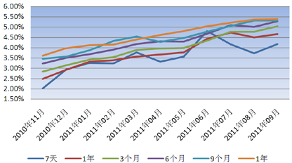 图7 2011年3季度SHIBOR利率走势