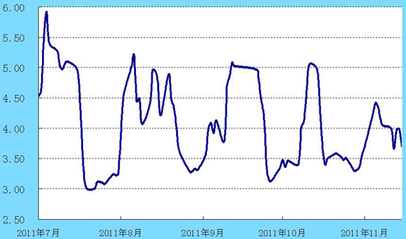 货币市场:上周央行虽然在公开市场净回笼240亿元,但三年来首次下调存款准备金率,市场流动性略显宽松,7天回购利率较前周下跌34个基点至3.7%