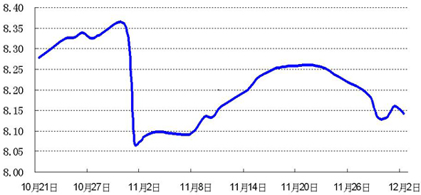 上周人民币兑美元即期价格在中间价支撑下稳中小升。央行持续将中间价定在相对高位,但市场购汇需求较多,致后半周人民币屡屡触及跌停线
