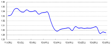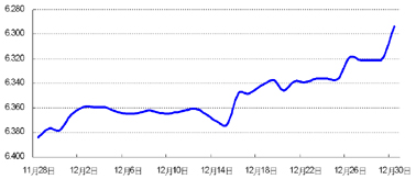 由于投资者对欧债危机的担忧加剧,欧元兑美元跌破1.30。人民币兑美元中间价重拾升势,12月30日报6.3009,较年初上涨5.11%