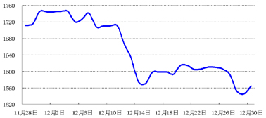 货币市场:虽然央行公开市场小幅净投放,但跨年资金面仍然较为紧张,周五7天回购利率报收于5.6014 %,较前一周上升187bps