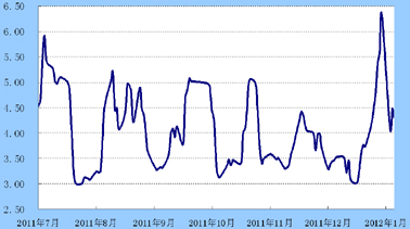 货币市场:上周公开市场暂停央票发行以及正回购操作,净投放资金510亿元,跨年资金紧张情况逐步消除,7天回购利率回落202bps报收于4.3063 %