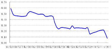 美国经济数据良好,欧债危机延续,避险资金流入美元资产,欧元兑美元跌破1.27。人民币兑美元中间价延续升势,新年第一周上涨0.25%