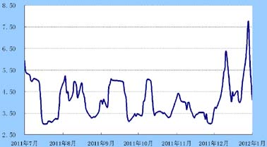 货币市场:节前市场资金非常紧张,后因央行连续逆回购逾3500亿,资金利率高位回落。7天回购利率曾上行至7.72%的高点,后回落至4.13%