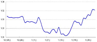 美联储宣布2014年末前不升息,市场对希腊债务问题持乐观看法,使欧元兑美元升至六周高位的1.3219。人民币兑美元较13日跌27bps至6.333