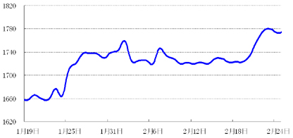 欧元区财长会议批准了希腊第二轮援助计划,短期缓解市场忧虑情绪。国际金价打破窄幅震荡格局突破每盎司1780美元,触及三个月来高点