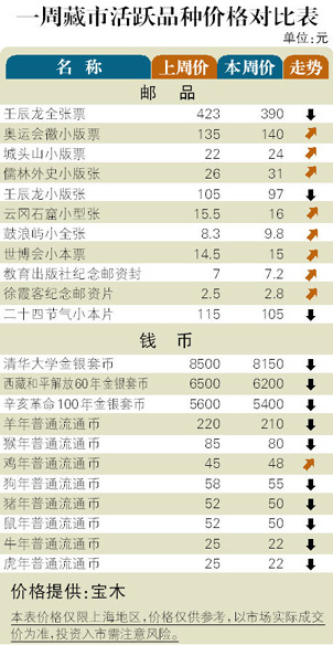 3月中旬,藏市热点品种波动频繁,市场处于冲关前的振荡洗盘阶段。邮市:第三轮生肖版张是上周市场上最厉害的板块,大多数品种上蹿下跳,短线客则不亦乐乎地做短线差价。其中“甲申猴”全张票在上攻820元后,再度回调至750元蓄势。“壬辰龙”全张票和小版张分别回调到390元和97元。币市:2012版“熊猫”1盎司银币货源开始出现,价格也回落至275元,短期下探空间仍存。“中行百年”香港版和澳门版纪念钞随货源明显增多,分别下跌至950元和1600元,而发行量庞大的澳门龙年钞则维持在250元附近,惟这枚本属流通的澳门钞,却成了内地藏市的炒作对象。