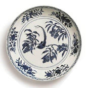 明永乐青花荔枝绶鸟图大盘