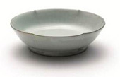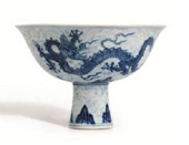 从上至下:清乾隆粉彩过枝福寿双全图盘、北宋汝窑天青釉葵花洗、明宣德青花暗花海水游龙图高足盌