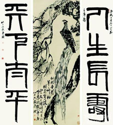 2011年亿元拍品第1名,齐白石《松柏高立图篆书四言联》。