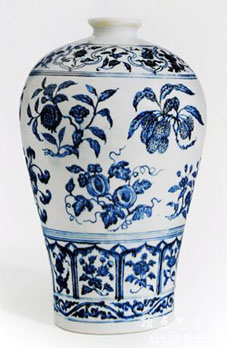 2011年亿元拍品第10名,明永乐青花如意垂肩折枝花果纹梅瓶。