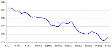 因欧债危机局势动荡,欧元兑美元上周下降83bps报1.2432美元。随着海外市场美元升值,人民币贬值,美元兑人民币升251bps报6.369元