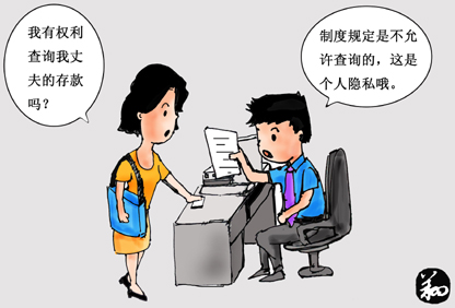 可见,个人的储蓄存款情况和个人存款账户等是涉及个人隐私的材料,因此,妻子作为“其他单位或个人”在没有法律明确规定的情况下,不能向银行查询丈夫个人存款。银行拒绝王女士的查询要求是正确的。有人提出根据《婚姻法》等法律法规,夫妻在婚姻关系存续期间所得财产归夫妻共同所有,共有人可以查询共有财产。但因为,第一,在夫妻关系存续期间夫妻可以通过约定使共有财产变为个人财产,银行无权也无力判断某个个人当前婚姻现状和婚内财产处理机制,因此也无权无力判断账户内财产的个人或共有性质;第二,相关法律并未明确授权夫妻一方可以查询对方的存款。因此,妻子不能向银行查询丈夫个人存款,同理,在有特殊关系的群体之间,如夫妻之间、父母与子女之间、股东之间都不能相互向银行查询对方的存款。