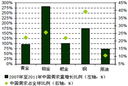 2012年第一季度ETF及类似产品的需求达51.4公吨,价值相当于28亿美元。值得关注的是,目前全球经济陷入衰退的风险正在逐步放大,欧元区主权债务危机前景不明朗,美国经济复苏乏力,黄金避险保值的货币属性正在悄然发生变化而体现出一定的风险资产特性,由于市场预期变化及投资流动性加剧,导致金价波动风险上升。