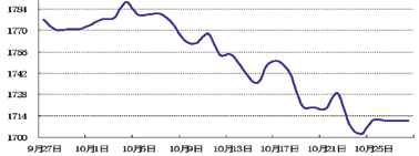 上周,因市场对全球经济增长前景持续担忧,风险资产受到冲击,黄金、石油抛盘较多,金价持续走弱至1710.76美元/盎司;因北海和尼日利亚石油生产出现问题,原油价格先跌后升,随后受到对飓风Sandy可能致美国东海岸炼厂停产担忧的影响,周末原油价格又回落至109.19美元/桶。
