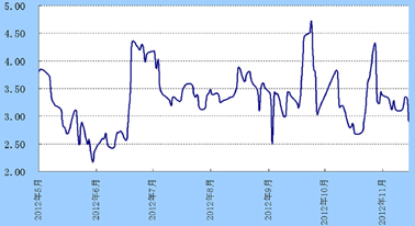 货币市场:上周,虽然公开市场净回笼资金750亿元,但在流动性宽松的背景下,银行间质押式回购利率下行,其中7天期品种下行20个基点至2.90%。