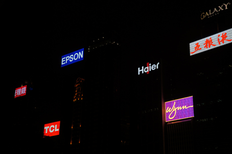 中资企业在香港湾仔与铜锣湾之间建筑上的霓虹灯广告 冰蓝/摄