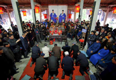 浙江浦江江南第一家”,又称郑义门,居住于此的郑氏家族,奉行以儒治家,倡导聚族合食共居,形成了长达十五世、历经360多年的家族制公社史。郑义门的事迹在宋、元、明三朝正史皆有记载,其孝义家风多次受三朝旌表。子孙们在共财同炊的历史长河中,摸索了奉父母以孝悌,待邻里以义礼的同居经验,成为儒家伦理的惟一实践基地。如今,明太祖朱元璋敕封的江南第一家留给人们的只是一个有着全国重点文物保护单位头衔的郑氏宗祠,这个当初由一家繁衍成族的郑义门,成为了浦江县境内的一个古镇——郑宅。几经改朝换代,今日的郑宅镇已经淹没在商品经济大潮的澎湃喧嚣中,从耕读世家转身成为中国挂锁中心,郑宅古老村落虽在慢慢消逝,但现代经济并没有湮没这里的乡土文化,郑义门家族生活的岁月沧桑,始终是郑氏族人心理积淀中最难释怀的情结。作为社会最基础的经济单位,经过数百年历史文化的变迁,江南第一家郑氏后人的心,仍以累世同居的荣耀凝聚在一起。