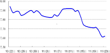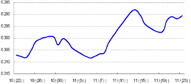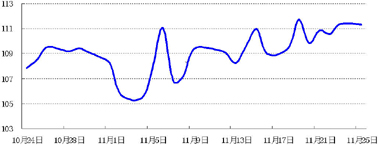 债券市场:因欧美债务问题出现缓解迹象,加之汇丰11月份中国制造业PMI初值13个月以来首返荣枯线上方,显示国内经济企稳回升的动能在加强,银行间债市上行动力趋弱,中债总财富指数上升0.03点至142.26,单周升幅较前两周有较大收缩。