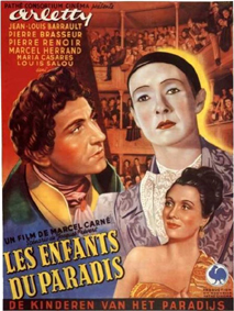 这是波兰版的海报。本片是法国1945年上映的一部描写四个男人与一个女人感情纠葛的宏大制作。波兰版上的人物是四个男人中的哑剧演员,在法国版的海报上也有他。