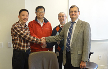 作者(左二)与MTAEF现任总裁布鲁斯(左三)、前任总裁菲力罗斯会面后合影