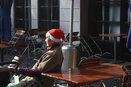《2012》电影今年用3D技术重上荧幕,奥巴马连任愈加为世界末日预言增添真实色彩。世界经济继续低迷,美国财政悬崖悬而不决,基督徒们每年从感恩节开始一直到新年钟声敲响,主旋律便是N多的HAPPY和与上帝对话。十几年前由时尚人士带动的庆贺圣诞,让餐饮爆棚交通瘫痪,直至引起关于中国人该重视过年还是洋玩意圣诞节话题讨论。今年,环顾北京圣诞整体气氛平淡,百盛在商场门口玻璃上用海报来装点,金融街购物中心地下商场开设了圣诞礼物的临时售卖专柜。同事出差上海,街道、橱窗里标志性圣诞小物品各就各位,整个吴江路上双立人正借着圣诞营销产品,超大圣诞树上挂立着双立人徽标,一上海老头也戴上了派发的圣诞帽子,小挂饰进了花坛。节日与经济与文化不可分割,今年北京上海的圣诞气象多少折射出了两个不同文化基因的城市,中国十八大后新气象从中南海以水的形态慢慢渗透到地方,文化大国从说到做有了时间表。无论是为钱财还是为忏悔为亲情,希望文化这个抽象名词融进中国每位个体的血液,形成一种灵魂不灭之精神。