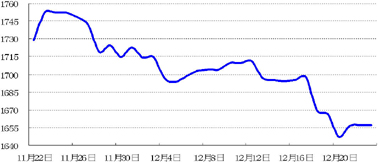 上周,因美国财政危机谈判进展缓慢,加之临近年末,投资者交易意愿降低,黄金价格一度下探至4个月以来的低位,单周下跌37.85美元/盎司至1657.24美元/盎司;此外,同受美国财政悬崖问题悲观预期的影响,布伦特原油价格较前周周五下行0.15美元/桶至109美元/桶。