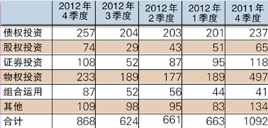 表2 2011年第4季~2012年第4季集合信托产品运用方式分布(单位:款)