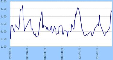 货币市场:上周资金供需失衡的困局迟迟未明显改善,公开市场当周依然延续资金净回笼态势。银行间质押式回购利率大幅上行,其中7天期品种上行至4.43%。