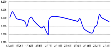 本周人民币兑美元中间价随外盘小幅走强,即期价格周五尾盘收报6.2237元,累计升值0.18%,欧元兑美元尾盘收于1.302美元。