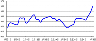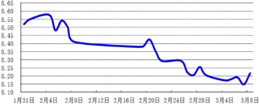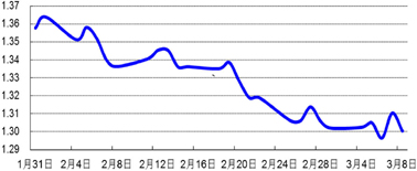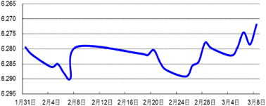 上周人民币兑美元中间价继续走强,即期价格周五尾盘收报6.2147元,累计升值0.14%,欧元兑美元尾盘收于1.2955美元。